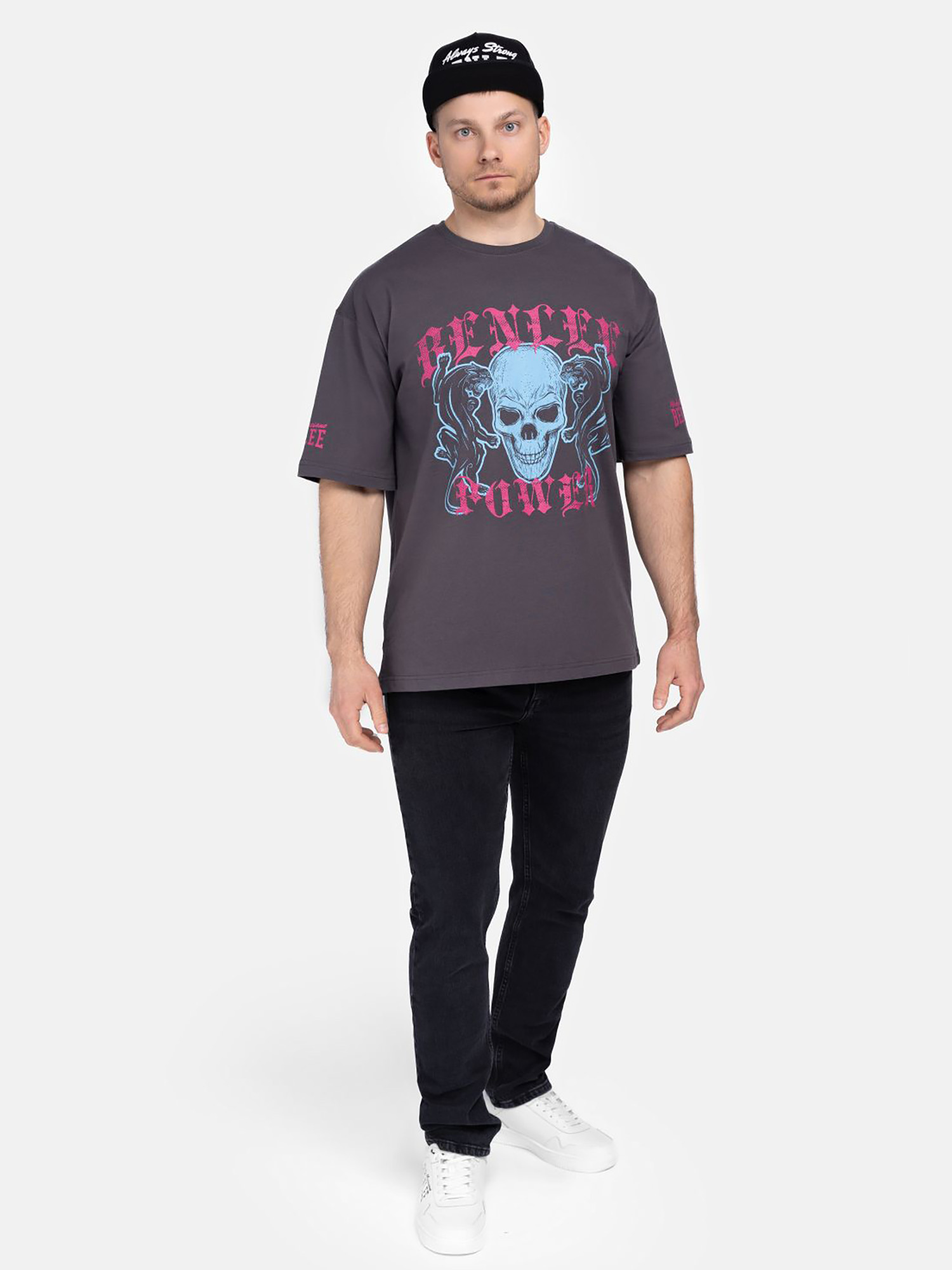 Camiseta de Hombre Oversize Anthracite/Magenta/Sky Azul