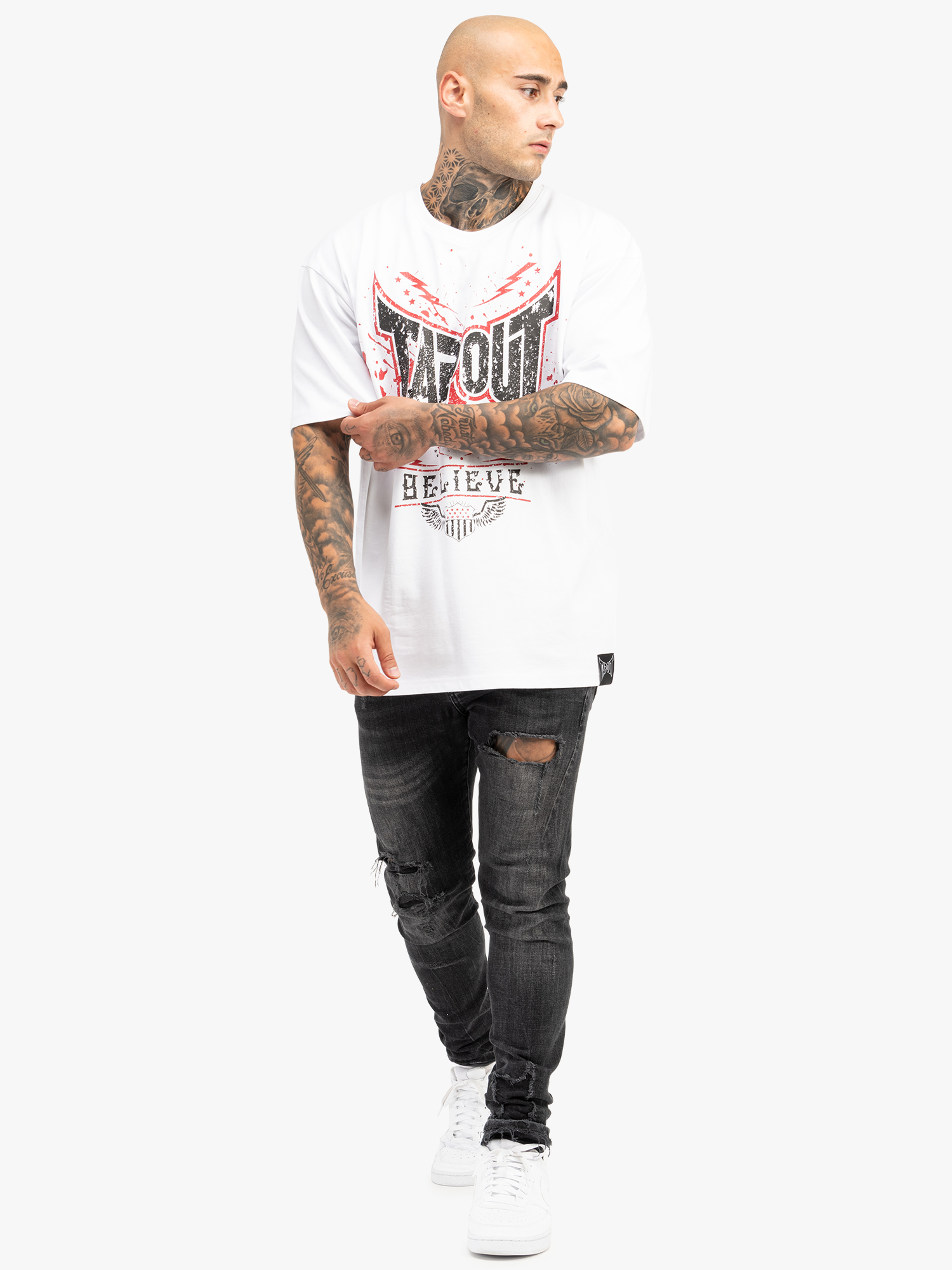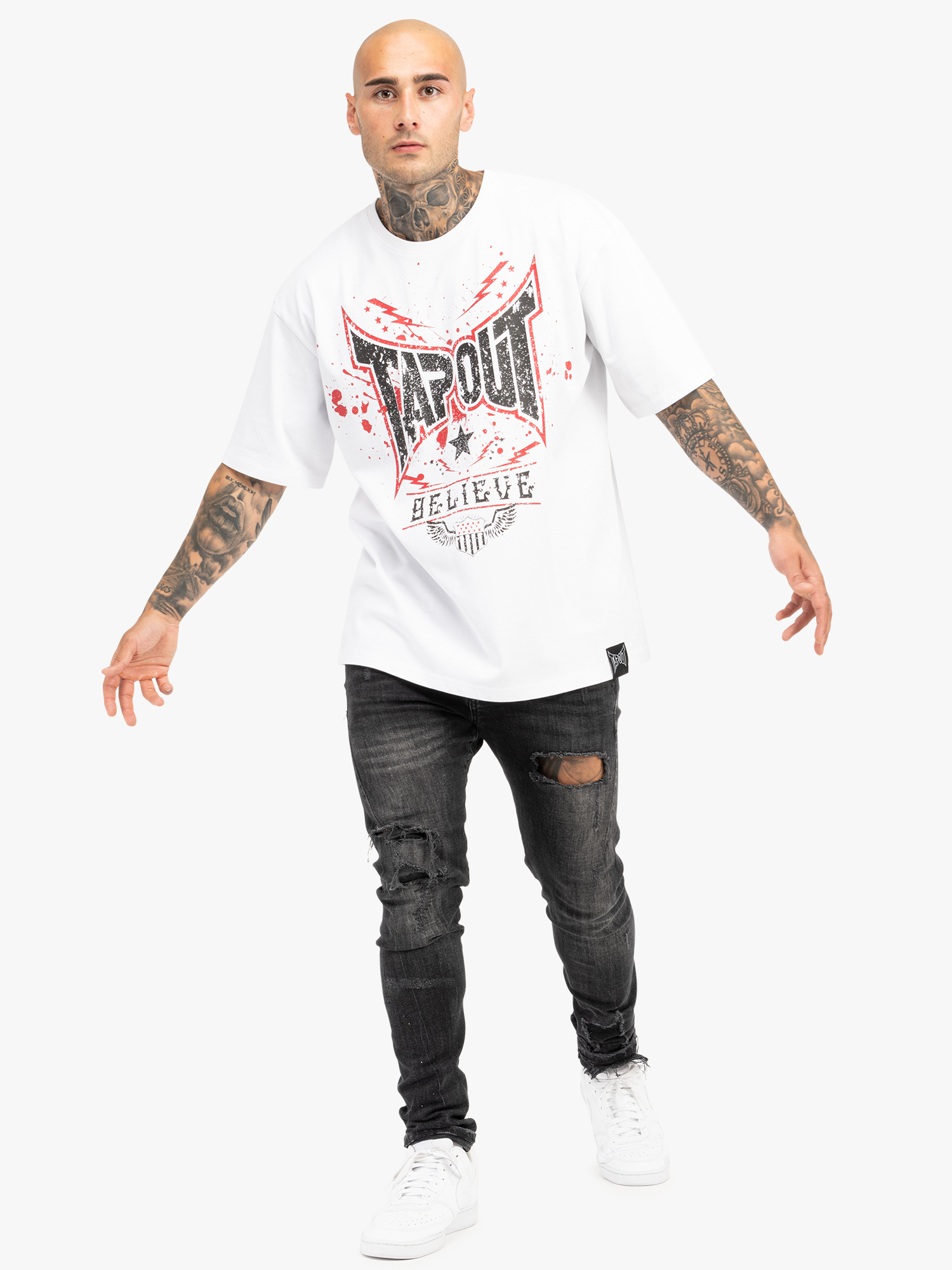Camiseta de Hombre Oversize Blanco/Rojo/Negro