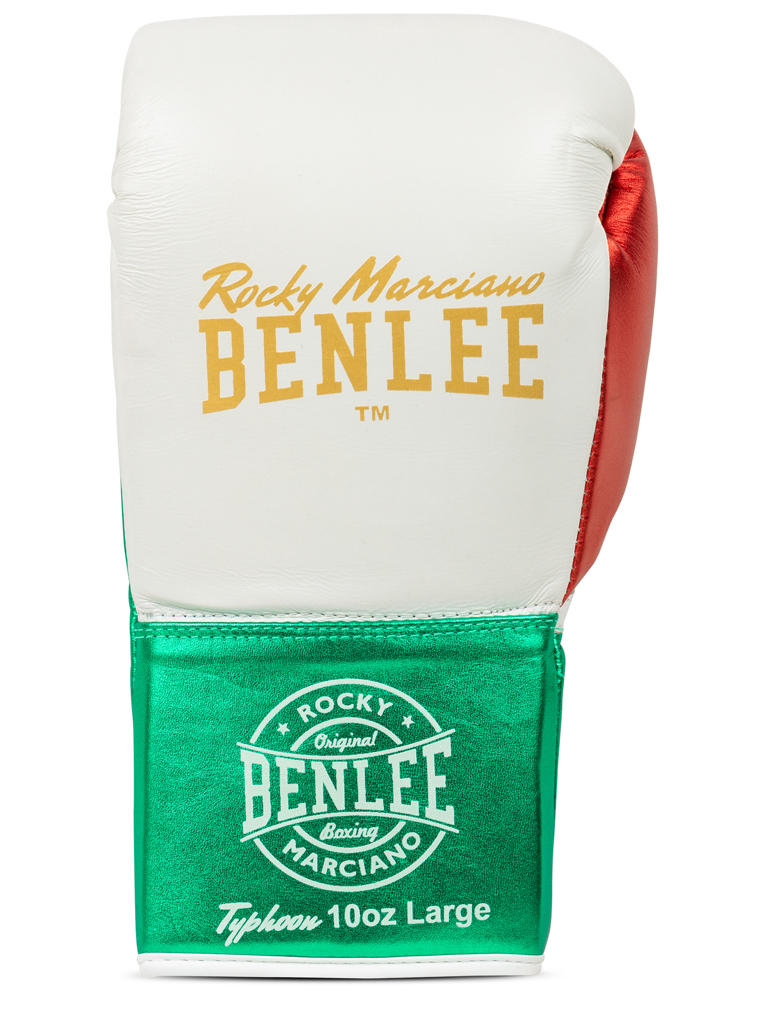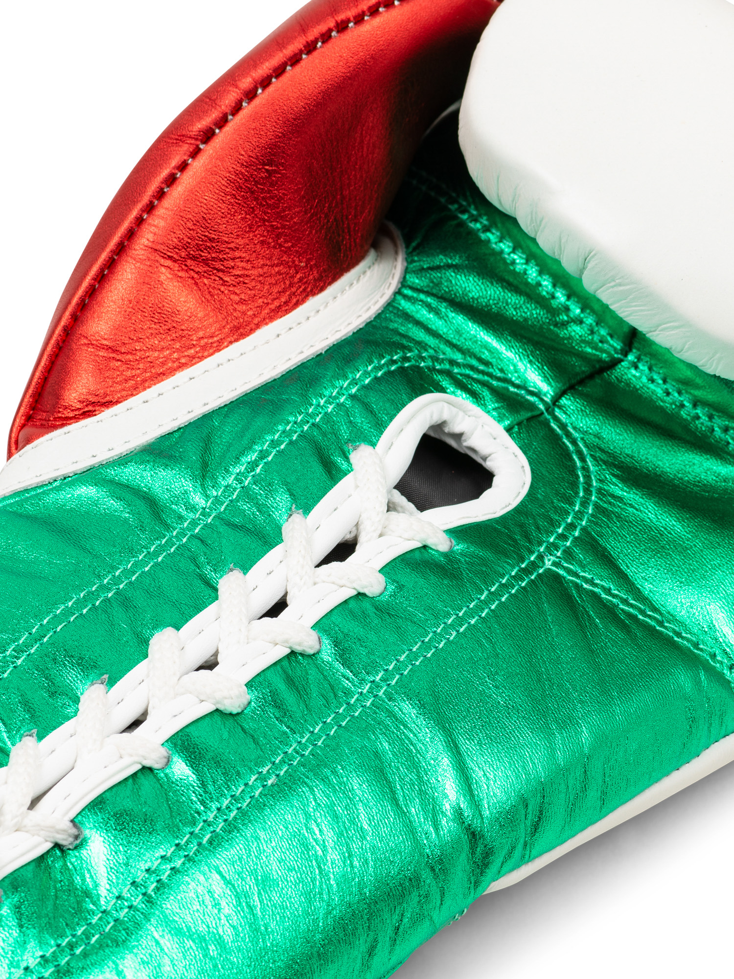 Guantes Profesionales de Boxeo de Cuero Blanco/Verde/Rojo