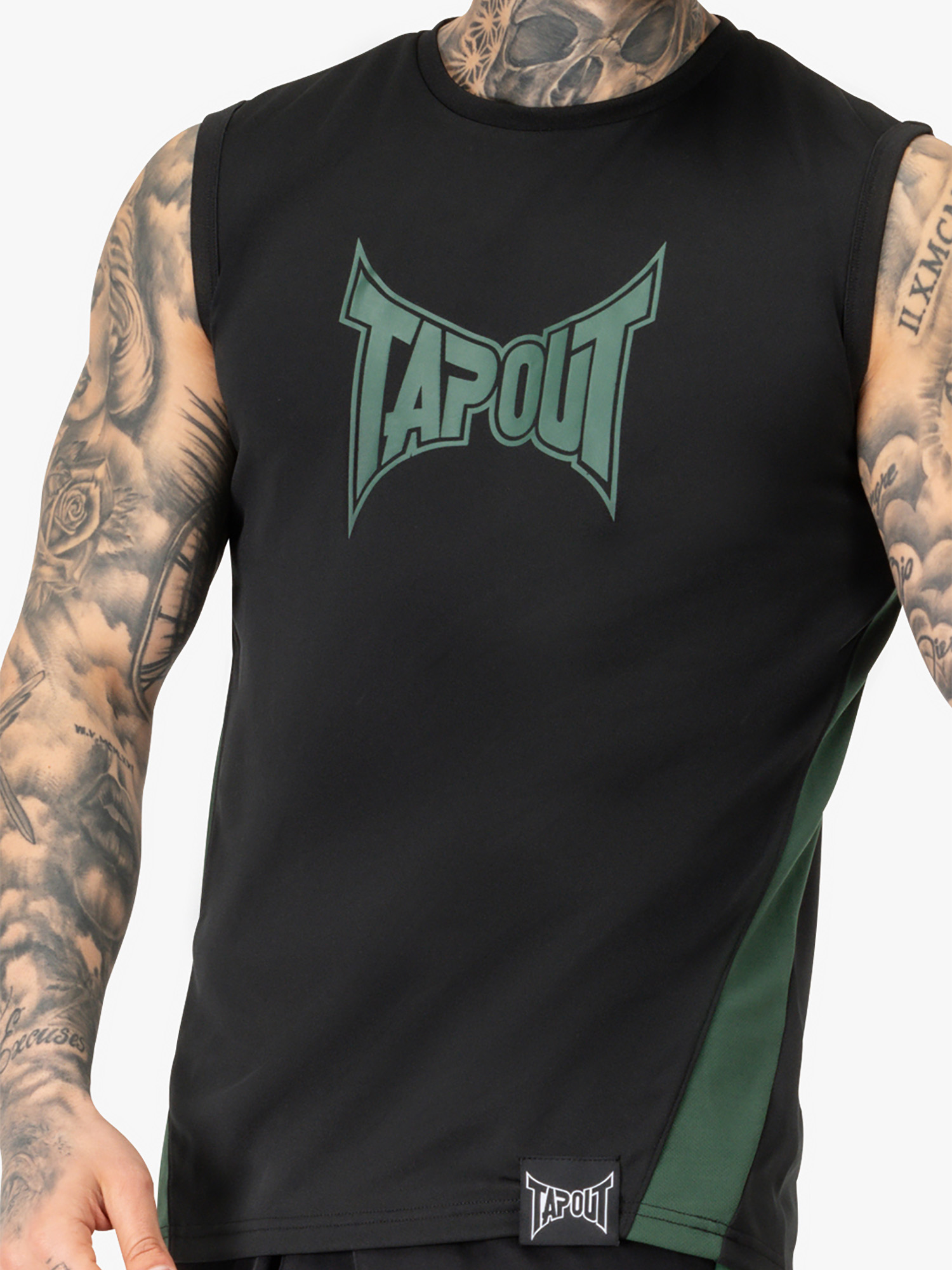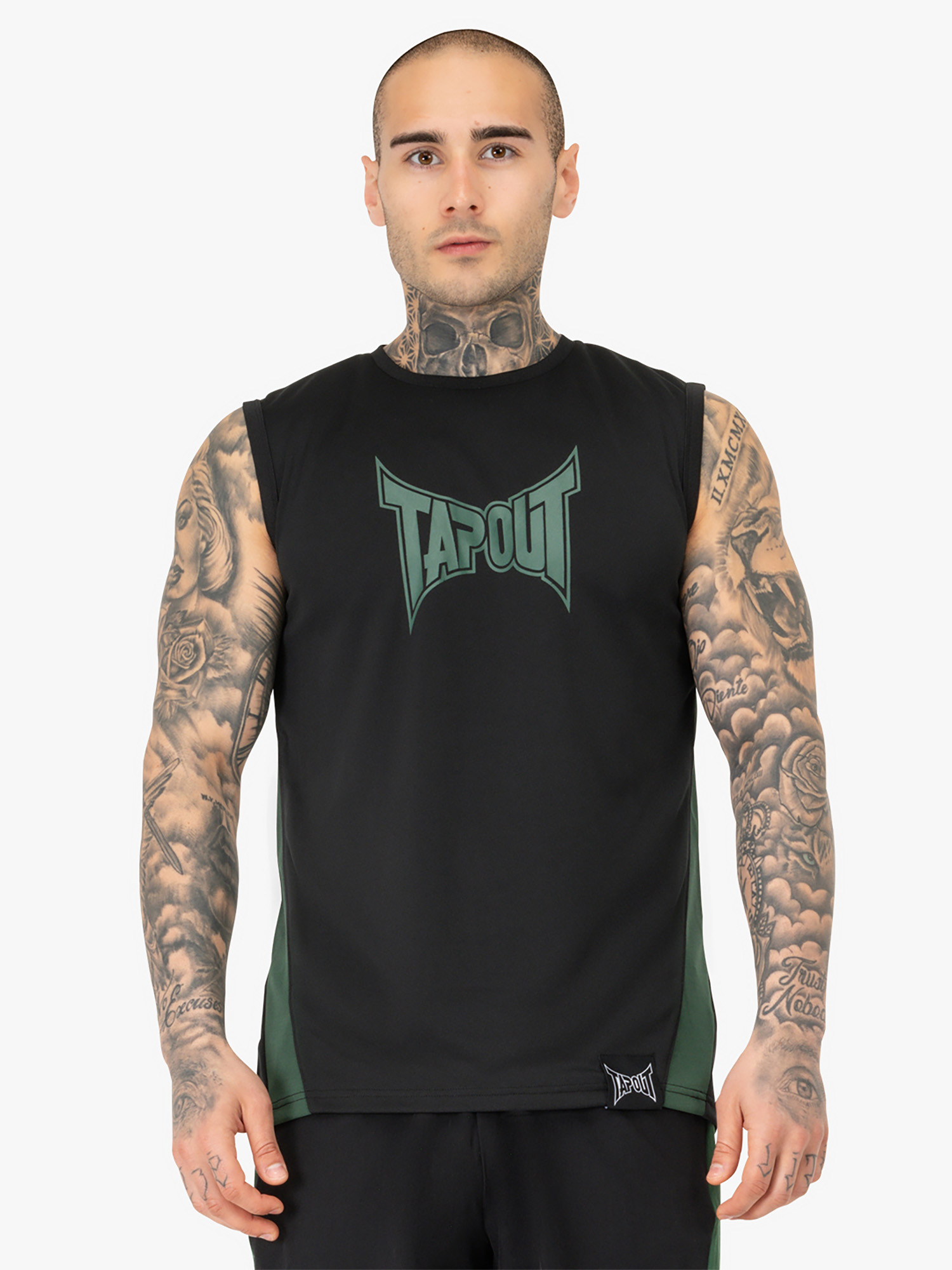 Hombre ärmelloses Camiseta Técnica Deportiva Regular Fit Negro/Verde
