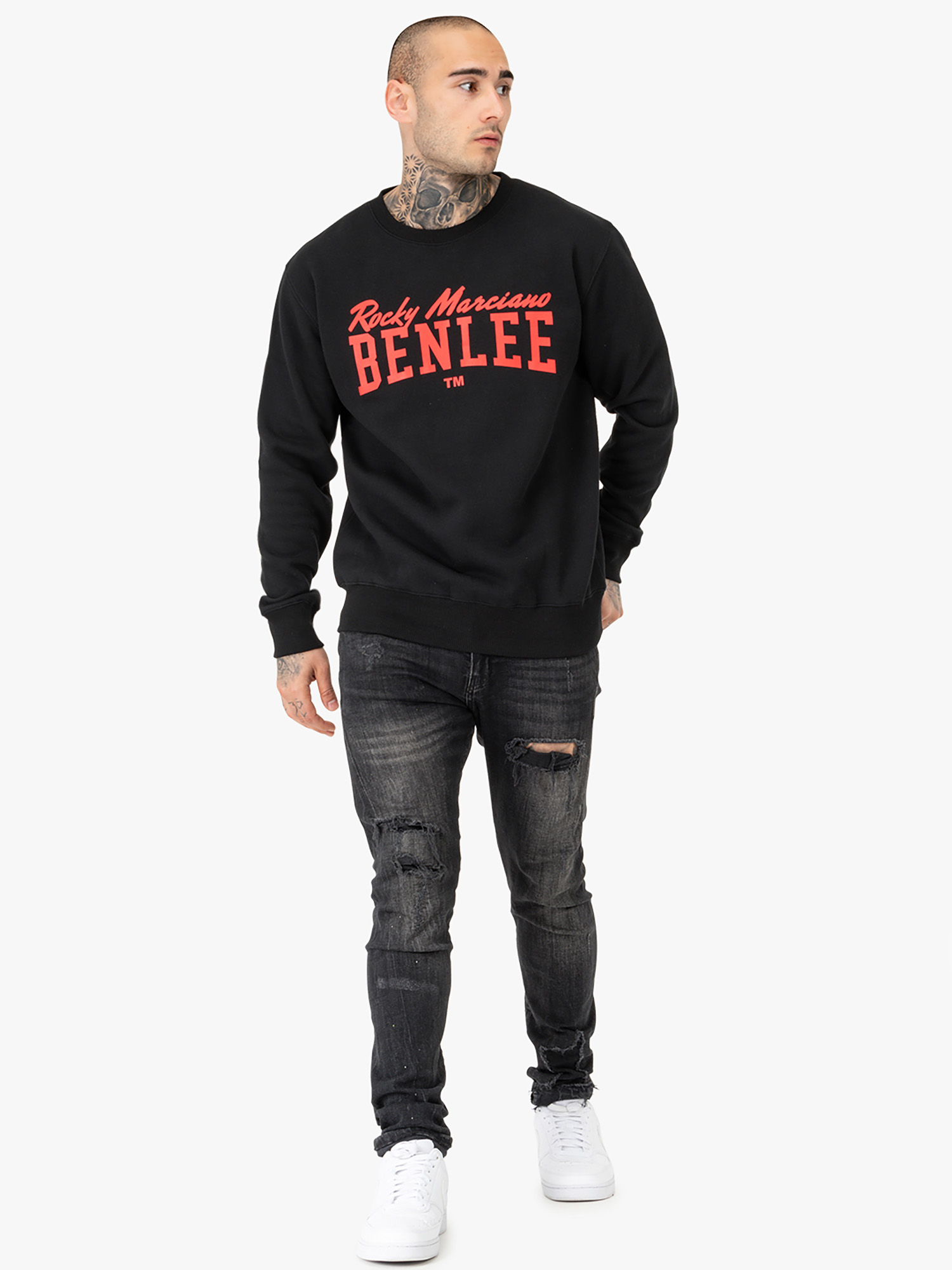 Hombre Cuello redondo Sudadera Regular Fit Negro/Rojo