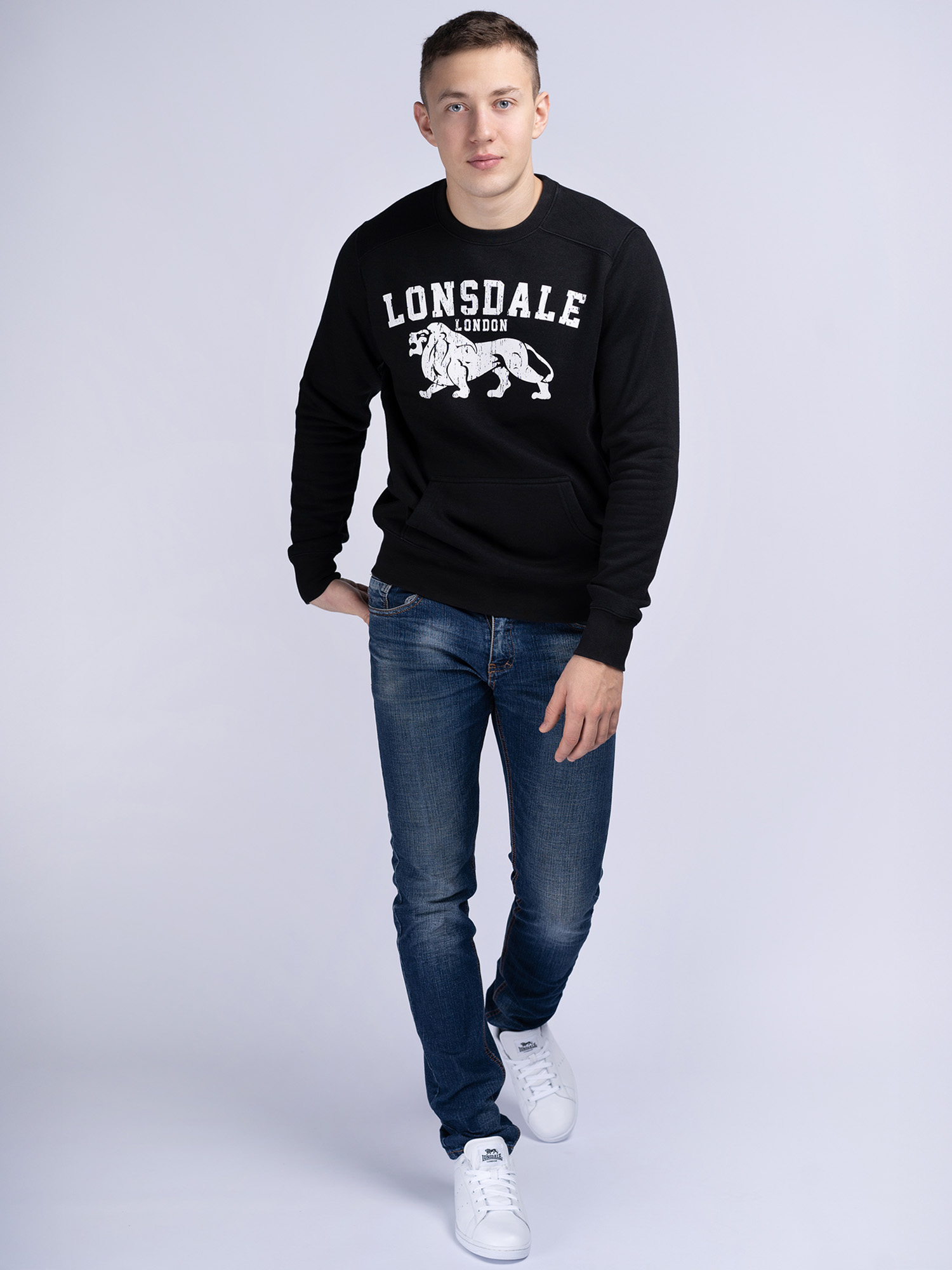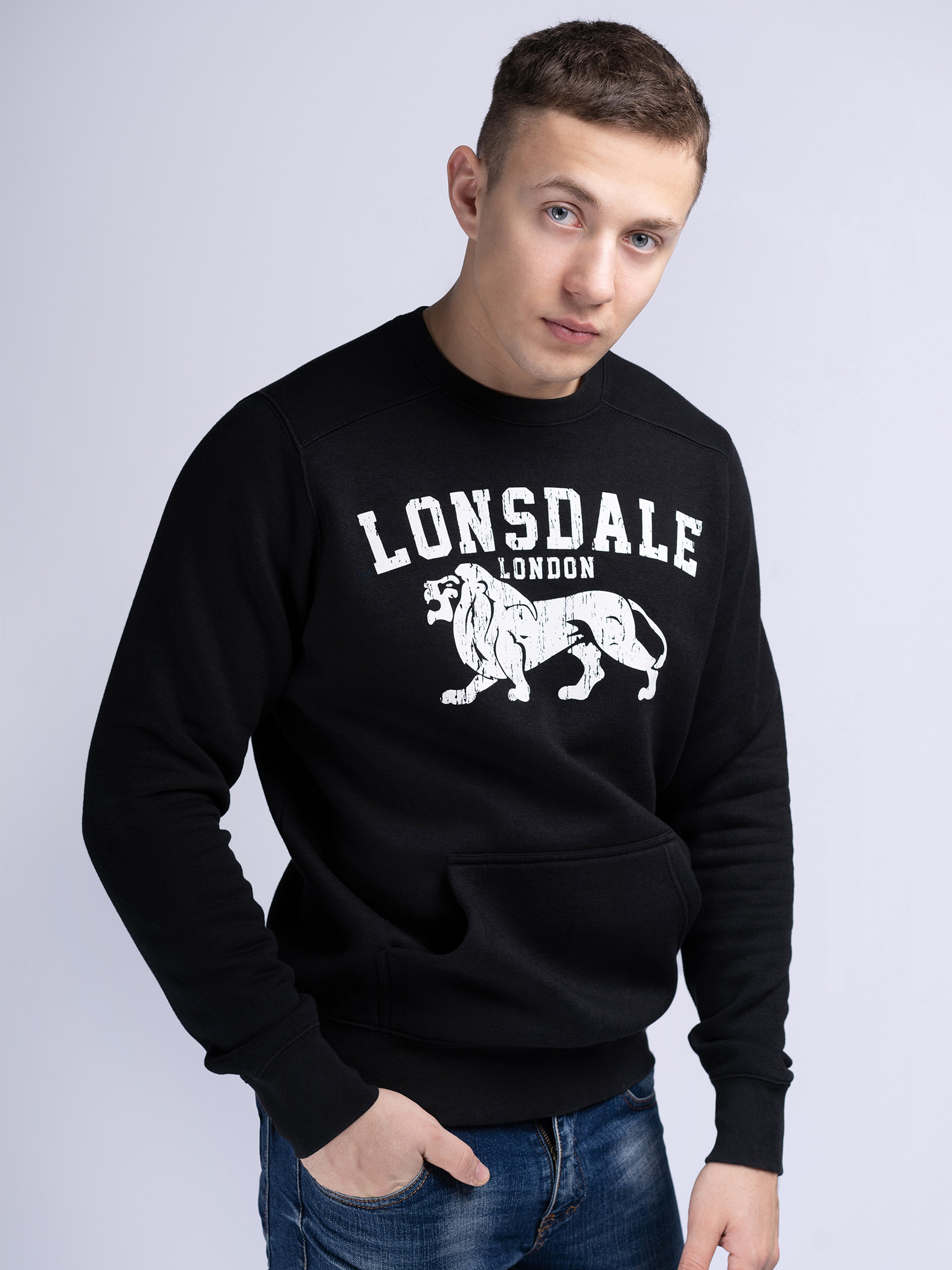 Hombre Cuello redondo Sudadera Slim Fit Negro/Ecru