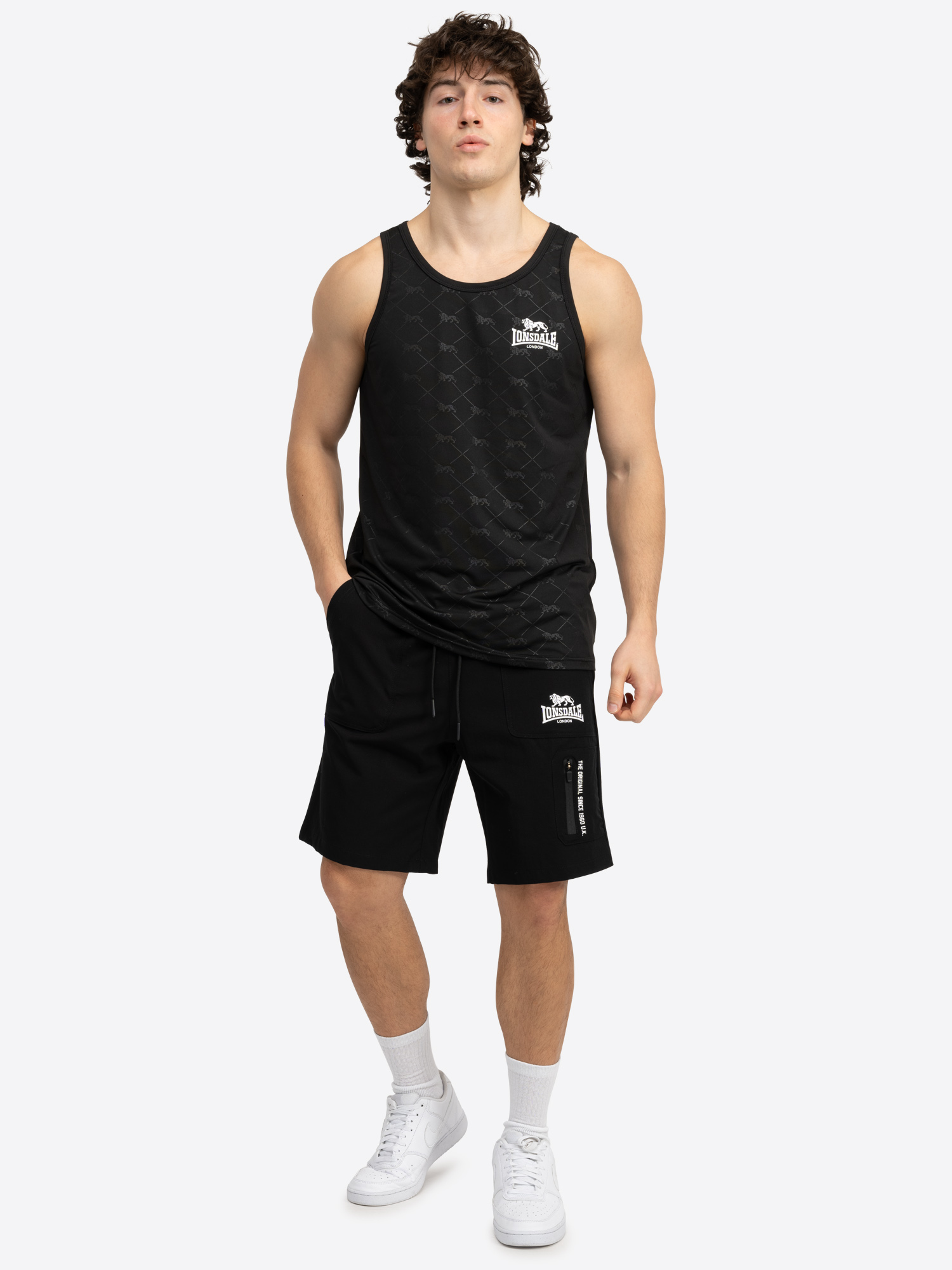 Hombre Funktionssinglet Regular Fit Negro/Blanco
