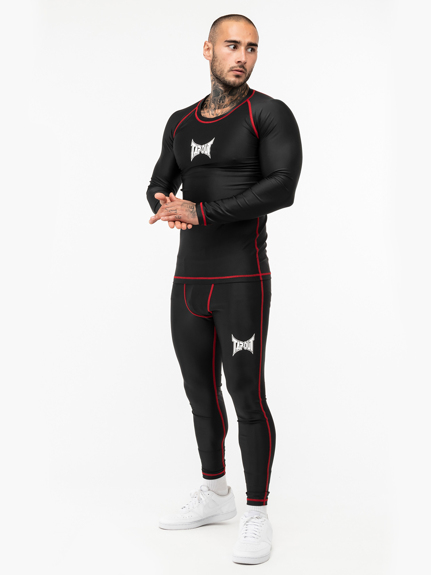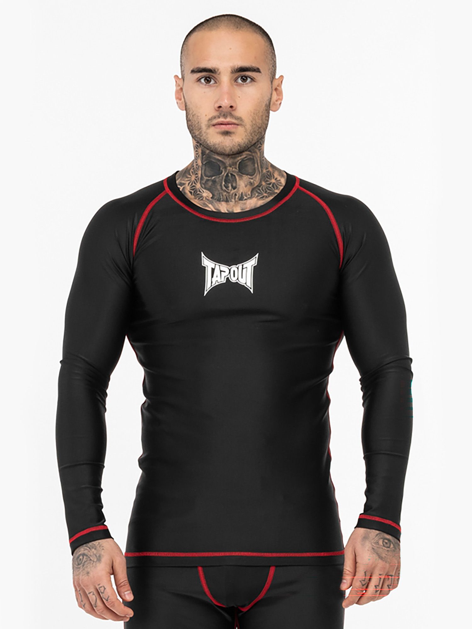 Hombre langärmeliges Camiseta Técnica Deportiva Slim Fit Negro/Blanco/Rojo