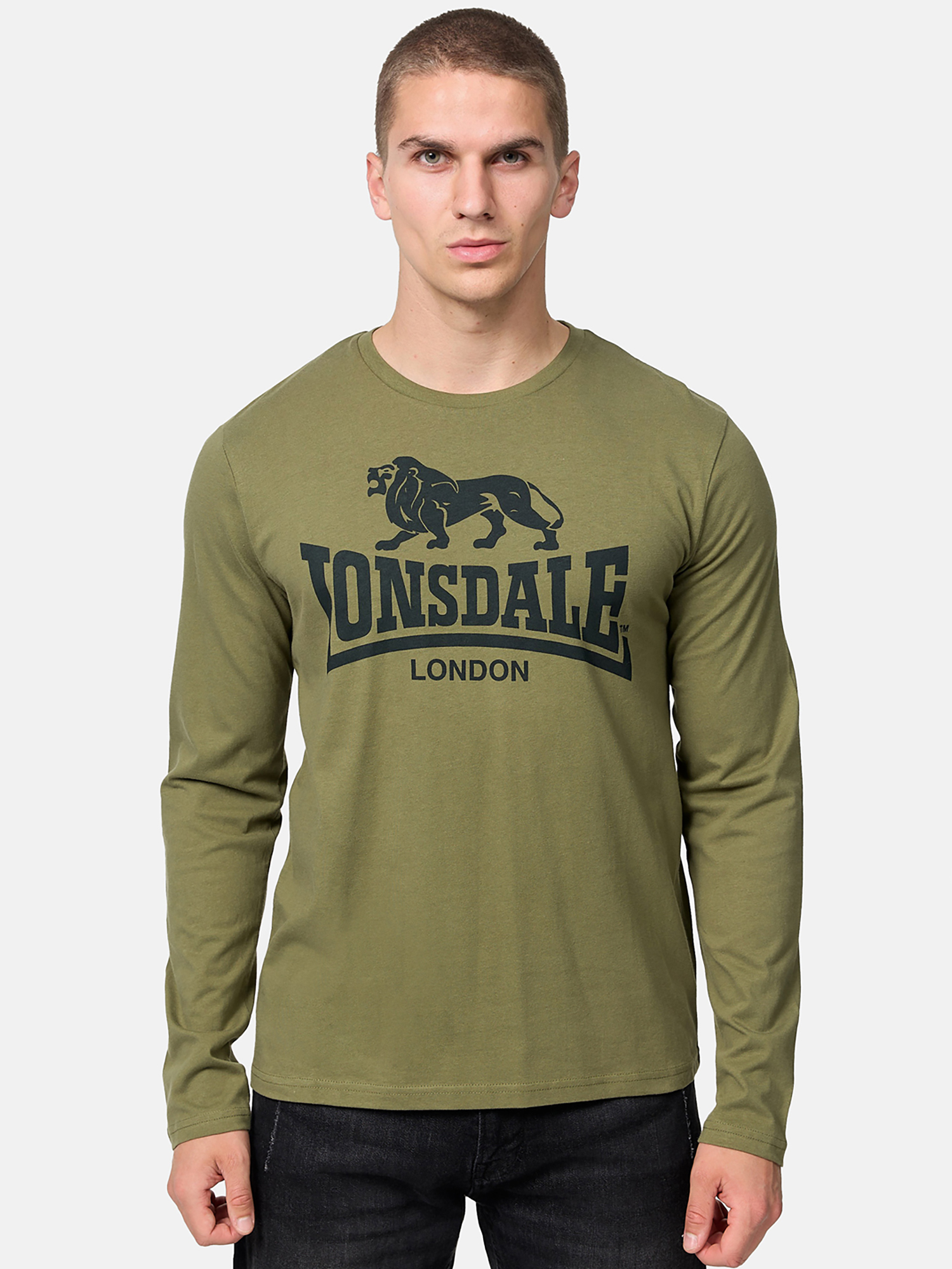 Hombre Langarmshirt Regular Fit Pack doble Negro/Olive