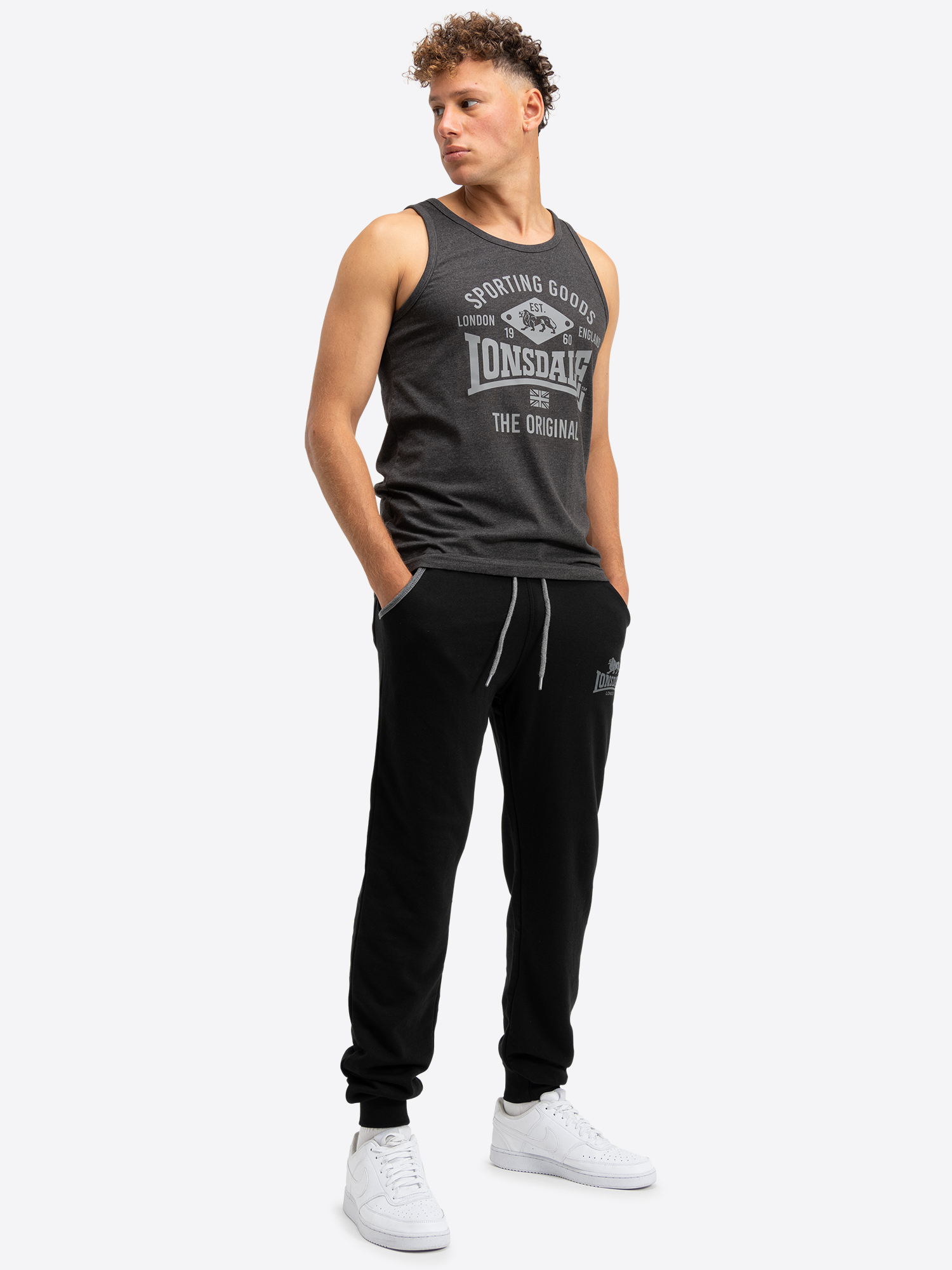 Pantalón de Hombre de chándal Slim Fit Negro/Gris