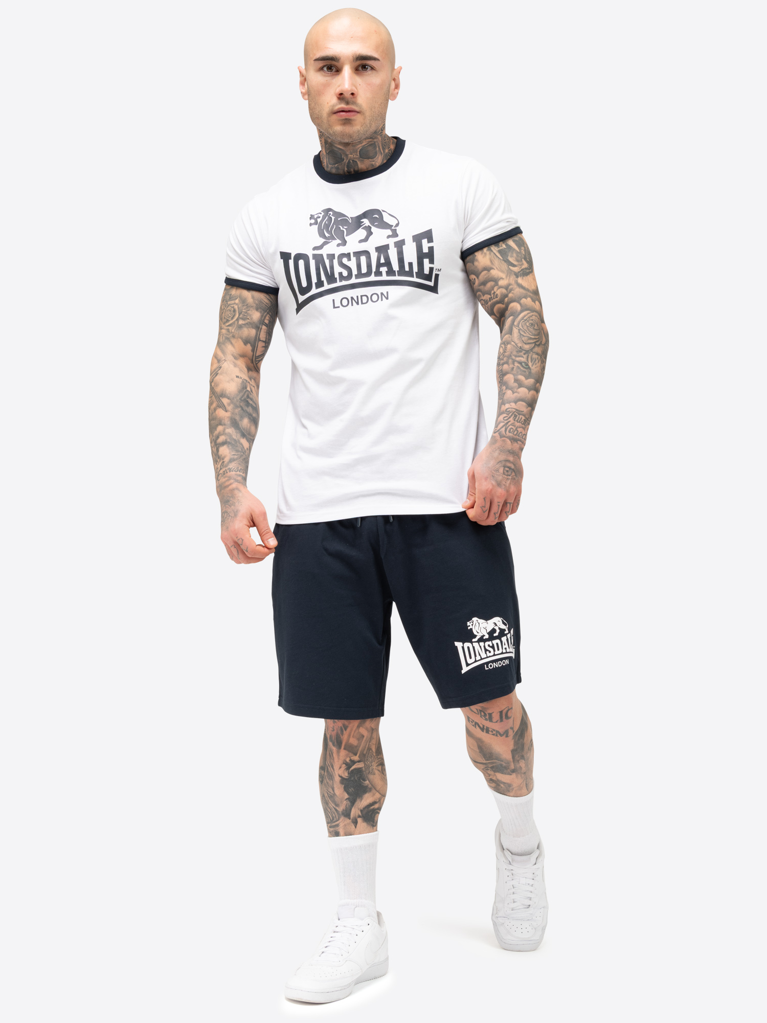 Camiseta de Hombre & Pantalones cortos Set Regular Fit Blanco/Dark Azul marino