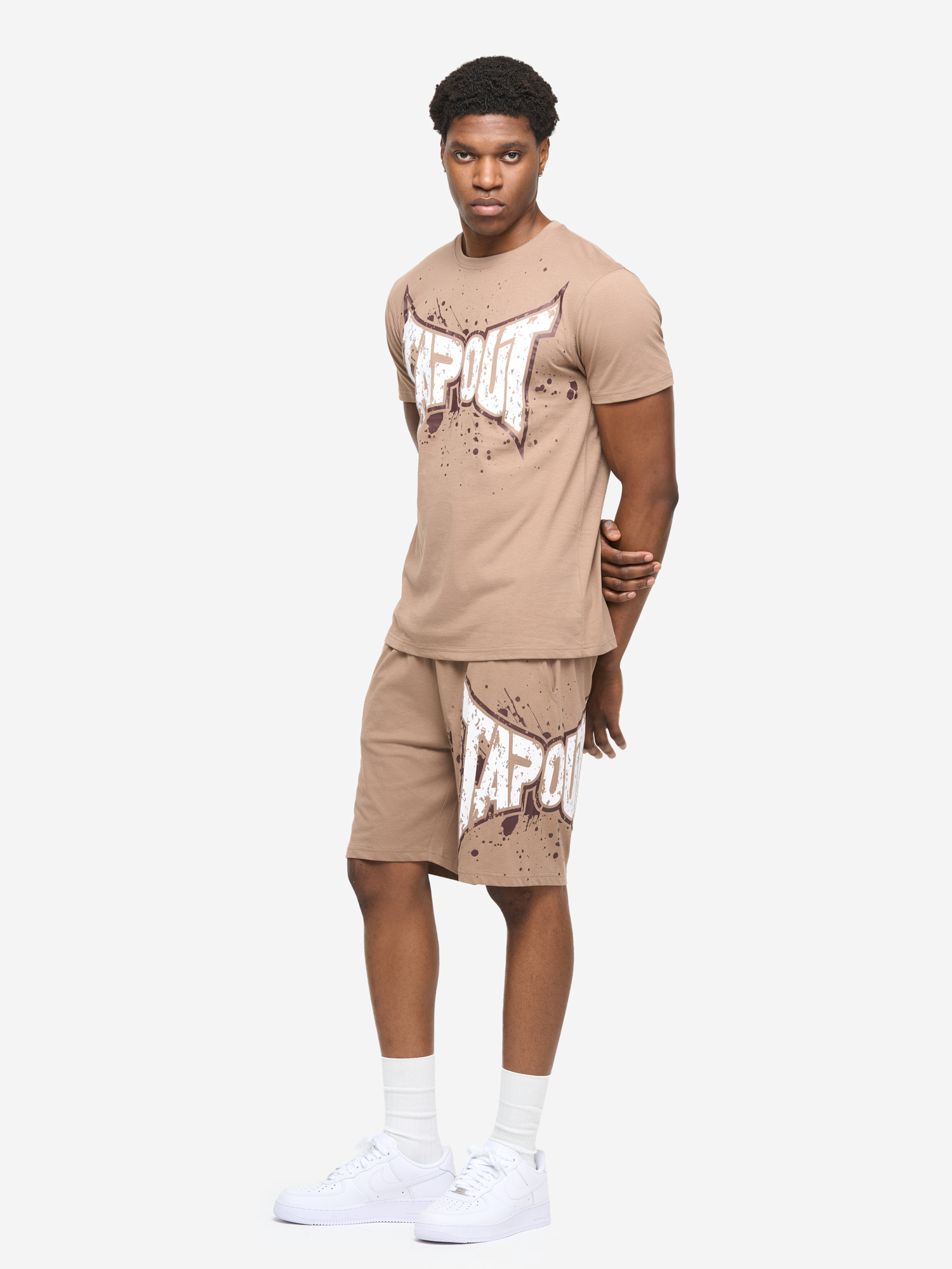 Camiseta de Hombre & Pantalones cortos Set Regular Fit Brown/Blanco