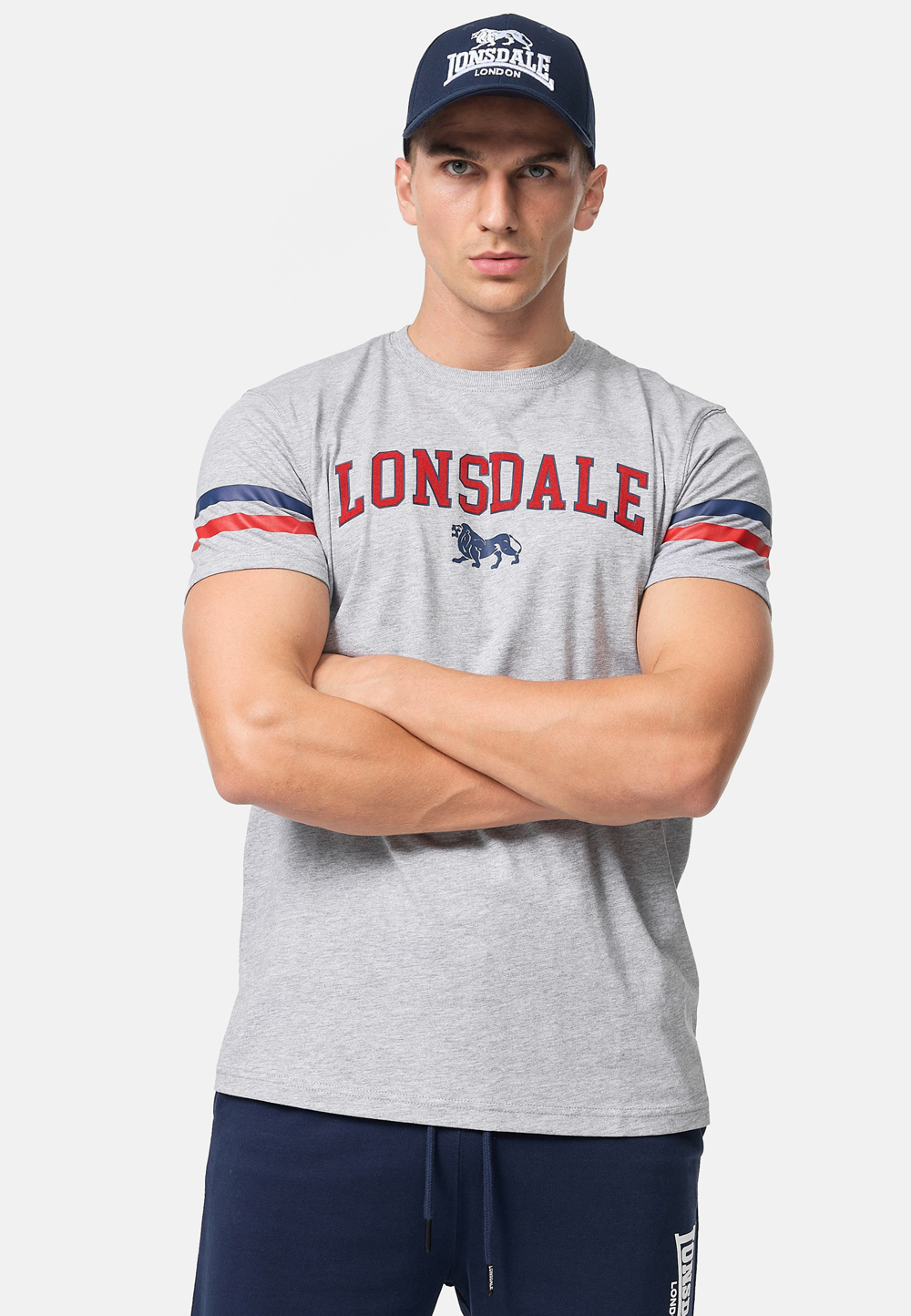 Camiseta de Hombre Regular Fit Marl Gris/Azul marino/Rojo