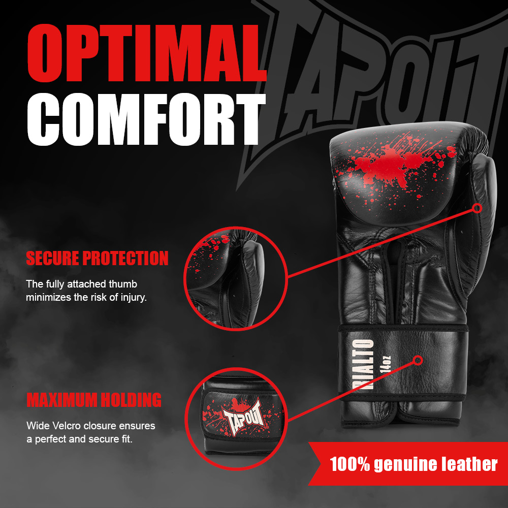 Guantes Profesionales de Boxeo de Cuero (1 Par) Negro/Ecru/Rojo